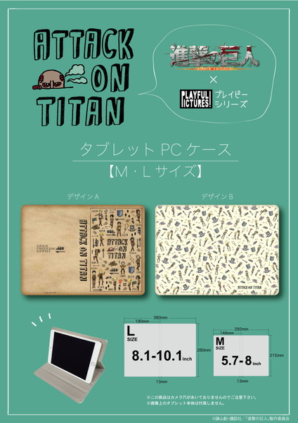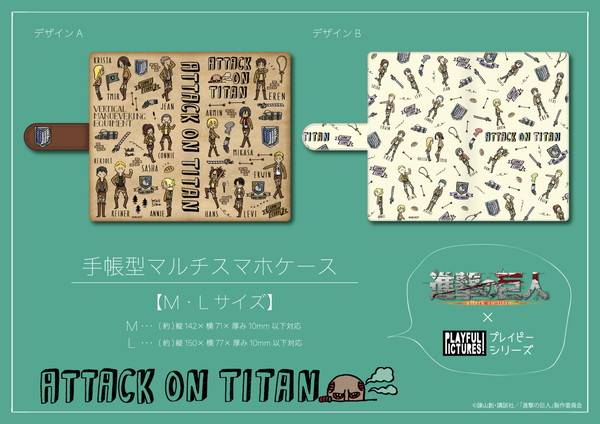 プレイフルマインドカンパニーでは、『進撃の巨人』の手帳型スマホケース(マルチタイプ)/パスケース/タブレットPCケースの予約販売が行われている。