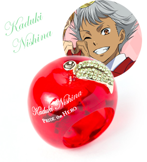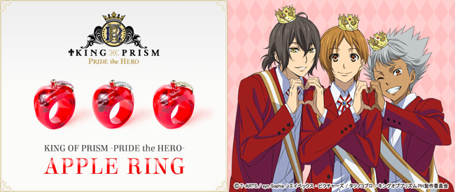 『KING OF PRISM by Pretty Rhythm』と『KING OF PRISM–PRIDE the HERO-』ともに、作品内でさまざま登場するリンゴをベースにした透明なリングには、『PRIDE the HERO』の文字と各キャラクターのネーム入り。