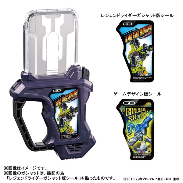 ガシャットのデザインシールは、劇中と同様の“ゲームデザイン版”と、各ライダーLv.2の姿がデザインされた“レジェンドライダーガシャット版”の2種類が付属し、好きなデザインにできる。