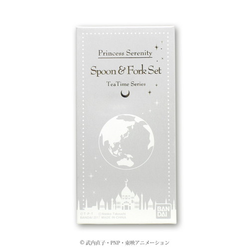 本商品は、プリンセス・セレニティをモチーフにデザインしたヒメフォークとティースプーンが各1本ずつ入ったカトラリー(ヒメフォーク・ティースプーンなど食事のための器具の総称)セット。