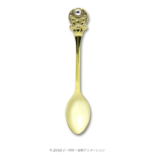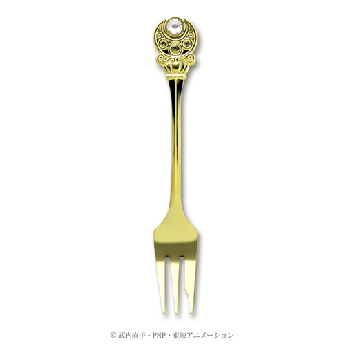 本商品の製作は、カトラリー産業で有名な新潟県燕市のメイドインジャパンを誇る高桑金属が担当。どちらのアイテムもプリンセス・セレニティの額の月とドレスをイメージした大きなシルバーのラインストーンが付いており、高級感漂う造形になっている。