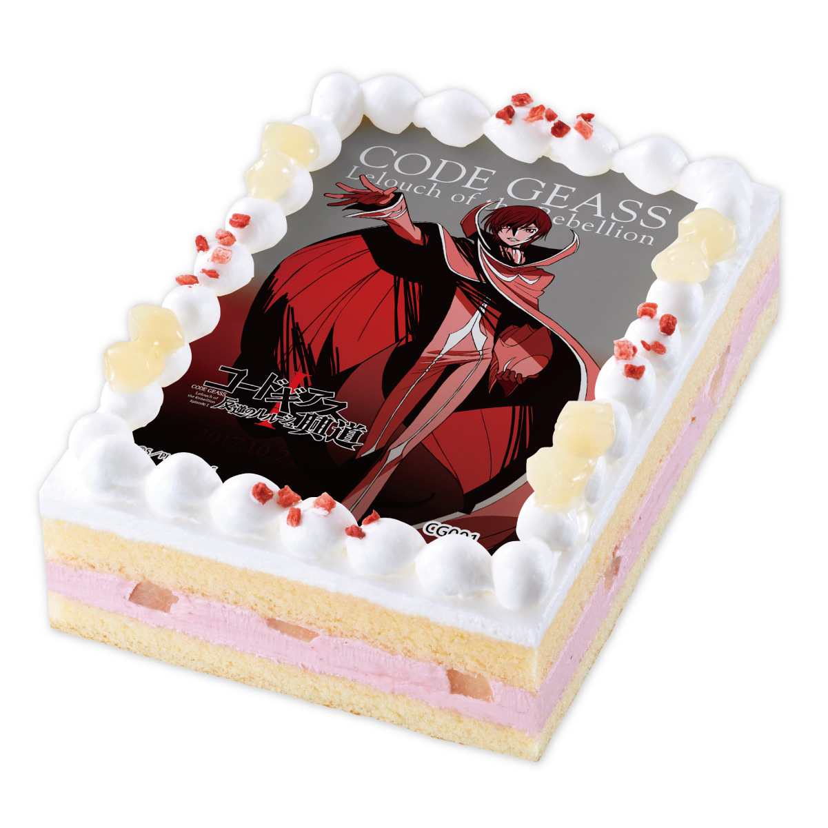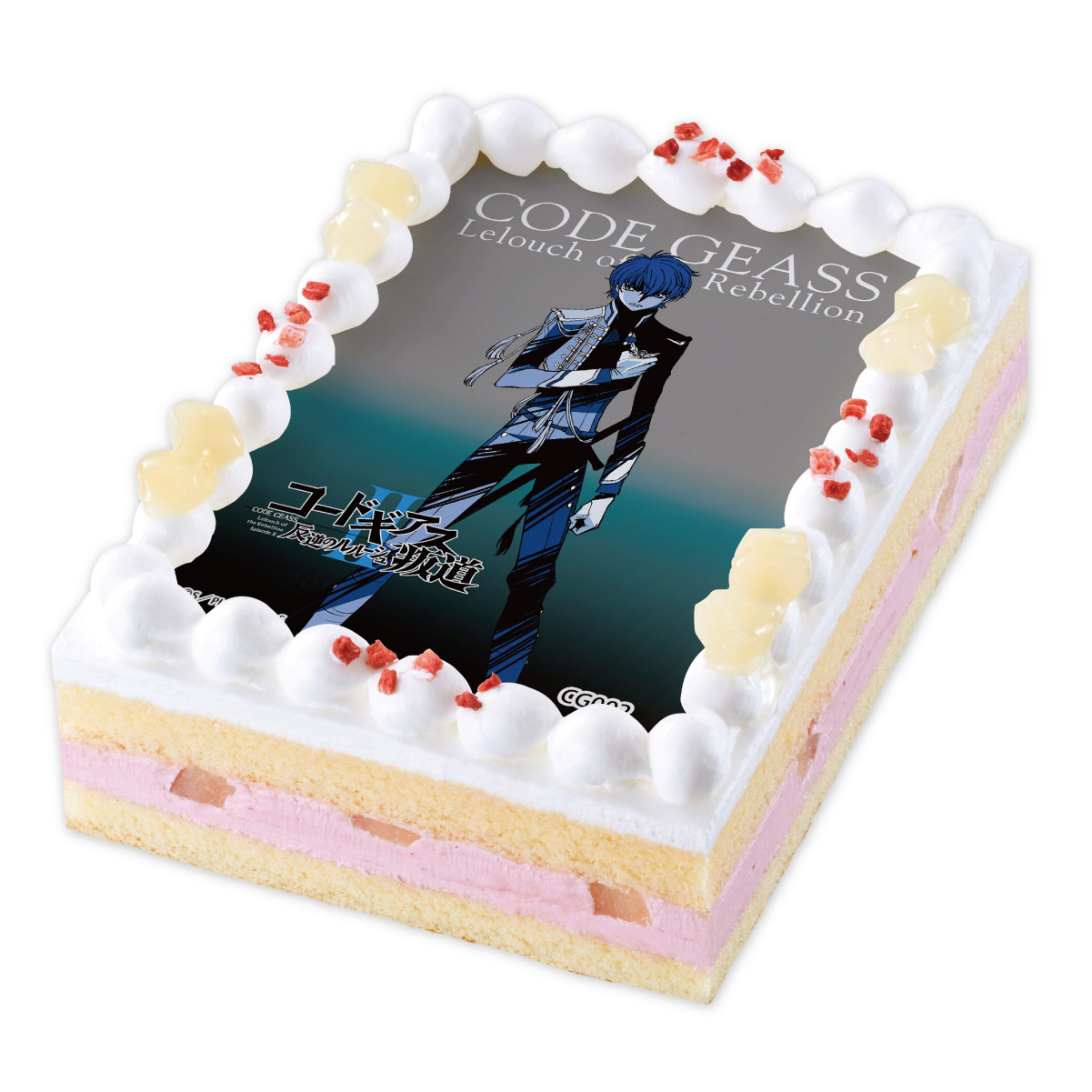 本商品は、劇場3部作『コードギアス 反逆のルルーシュ』に登場する主人公 ルルーシュ・ランペルージと、彼の幼馴染でありライバルの枢木スザクをそれぞれプリントしたケーキ。2017年10月より公開される劇場3部作のビジュアルが使用されており、全3種のラインナップで登場する。
