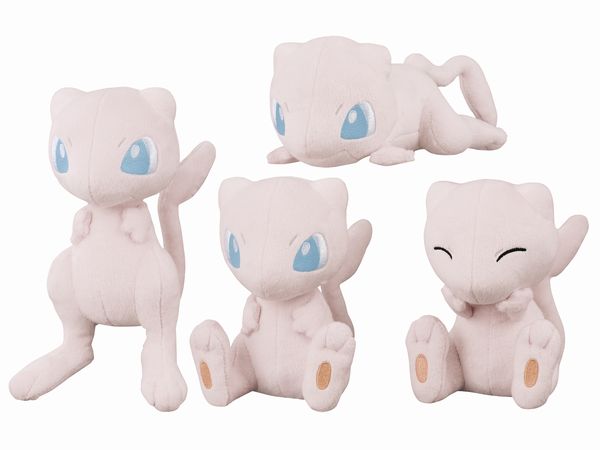 しぐさが可愛らしい、色々なポーズの「ミュウ」のぬいぐるみが登場です。