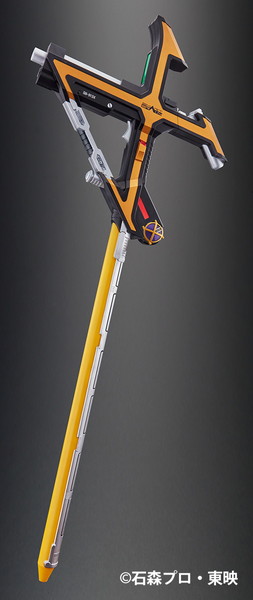 必殺技のゴルドスマッシュを放つ際に使用される“カイザポインター”は、ミッションメモリーの着脱により“双眼鏡モード”、“キックモード”2つのモードに変形。ポインターからはXマークが照射され、必殺技発動後のシーンを再現できる。