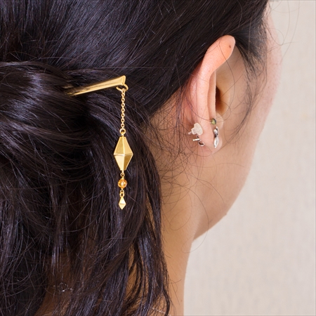 ヘアアクセサリーとしての着用時のみならず、オブジェとしても見応えがある存在感。軸には丈夫な真鍮軸を用いており、髪の長い方でも使いやすく1本使いでも まとめることができる。