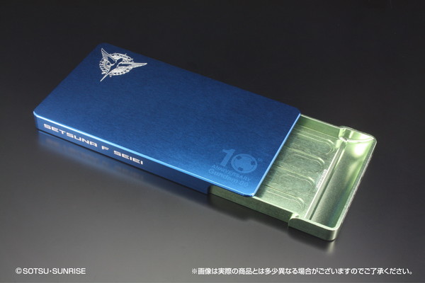 本商品は、それぞれのキャラクターのイメージカラーである青・緑・橙・紫でシンプルに仕上がっている。また、ビジネスシーンにもマッチするよう『機動戦士ガンダム00』の10周年記念マークが薄くレーザーでデザインされているほか、ソレスタルビーイングロゴデザインを特殊加工により彫り込まれている。