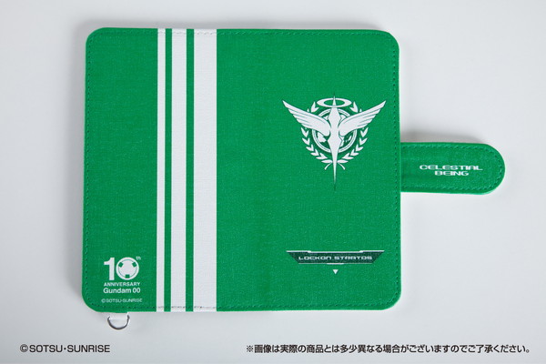 本商品は、前面にソレスタルビーイングロゴと背面に10周年ロゴをデザインし、各キャラクターのパーソナルカラーでデザインされている。スマートフォン全体を覆う折り畳み式カバーは、粘着固定式でさまざまなスマートフォンに対応する。