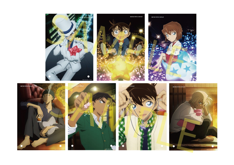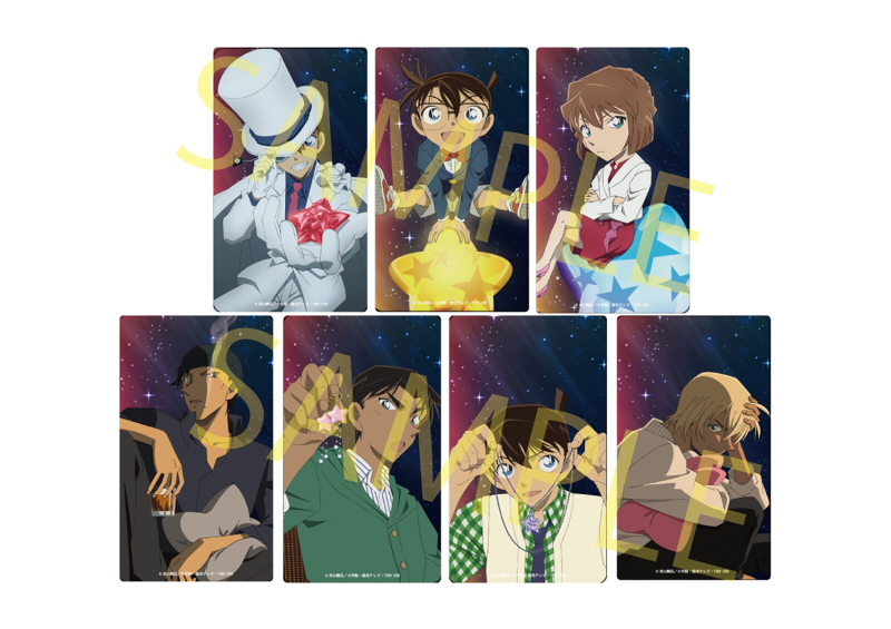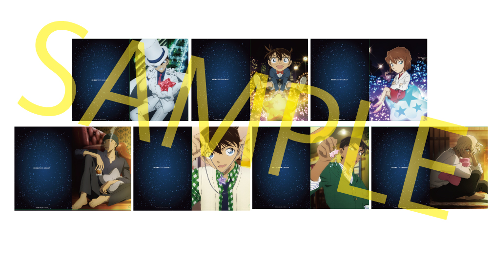 江戸川コナン、工藤新一、服部平次、灰原 哀、赤井秀一、安室 透、怪盗キッドのキャラクターイラストをそれぞれ使用したオリジナルグッズが販売。レイアウトをTVシリーズ監督の山本泰一郎さん、作画監督をキャラクターデザインの須藤昌朋さんが手掛けた、今回のためだけに描き下ろされた、“星”をテーマにしたスペシャルイラストとなっている。