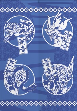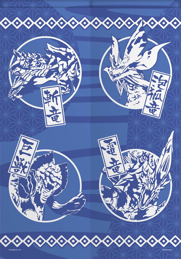 4大メインモンスターをデザインしたのれんは、ちょっぴり和テイスト。