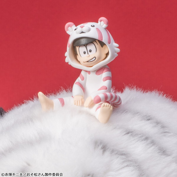 てのひらにちょこんと乗る“おそ松(ホワイトタイガーのパジャマ)”、“カラ松(キツネのパジャマ)”、“チョロ松(ひよこのパジャマ)”、“一松(バクのパジャマ)”、“十四松(リスのパジャマ)”、“トド松(アザラシのパジャマ)”の松野家の6つ子を立体化。