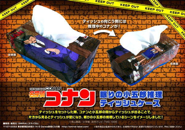 ティッシュをセットした際、コナンと小五郎の間からティッシュが出ることで、片方から見るとティッシュが壁になる。眠りの小五郎の推理しているシーンをイメージしたケースだ。