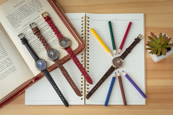 腕時計、バッグ、ブーティがラインナップ。今回は芥川龍之介、太宰 治、織田作之助、徳田秋声の4人をイメージしたアイテムだ。作品イメージの歯車モチーフや各キャラクターの衣装のモチーフを詰め込んだアイテムを身に着け、作品世界をいつもあなたのそばに♪