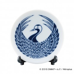 直径約70mmで普段使いしやすい「豆皿」は、三日月宗近、鶴丸国永、一期一振、へし切長谷部の4つの紋をモチーフに紺と白を基調にしたデザインとなっている。日本の伝統的手法で表現されており、歴史の深みをが感じられる名陶に仕上がっている。なお、本商品には豆皿立ても付属されるため、部屋に飾って楽しむこともできる。