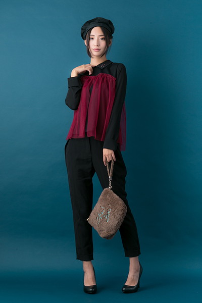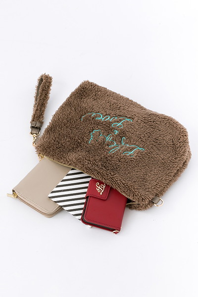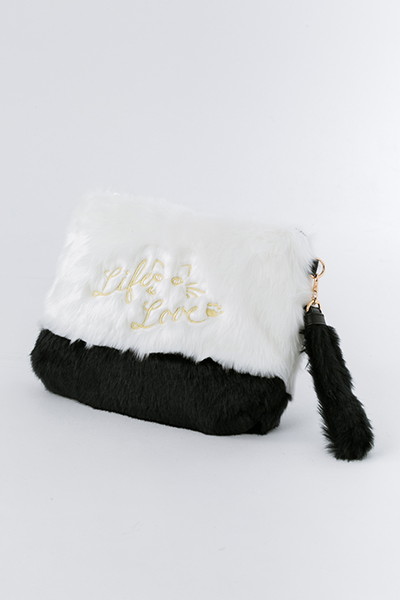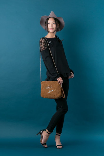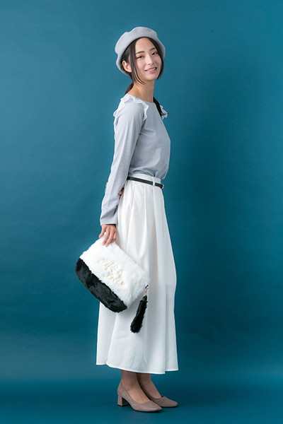 ニュアンスのあるカットソーとふわふわのファークラッチはこの冬にぴったり!トレンド感のあるコラボアイテムでコーディネートを楽しもう。