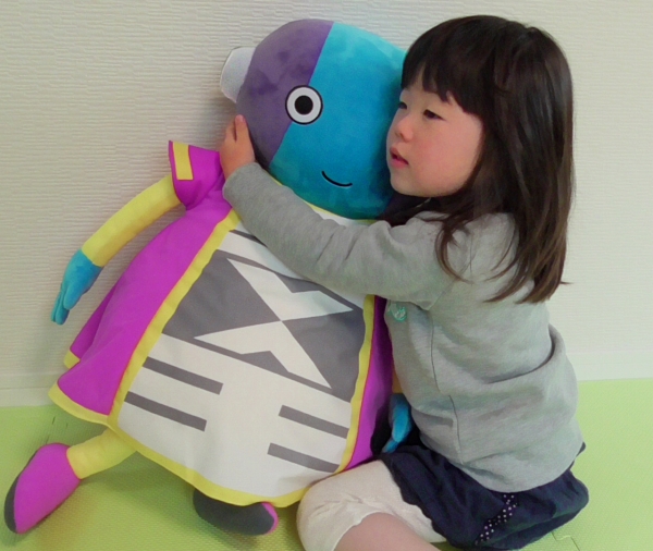 本商品は、『ドラゴンボール』シリーズ最新作『ドラゴンボール超』に登場するキャラのクッションだ。サイズは、設定上の大きさと同サイズの約70cm。素材はフワフワ、ツルツルで肌触りが良く、抱きしめているだけで癒されるものとなっている。