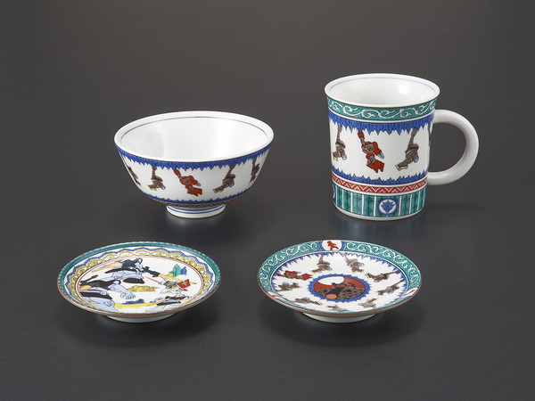 第1話~最終話の名場面などから厳選した25種のエピソードを、加賀百万石の伝統文化を五彩の色絵にたくした九谷焼の代表画風の古九谷風、木米風、吉田屋風、飯田屋風、庄三風で箸置きに描写し、存在感ある逸品に仕上がっている。