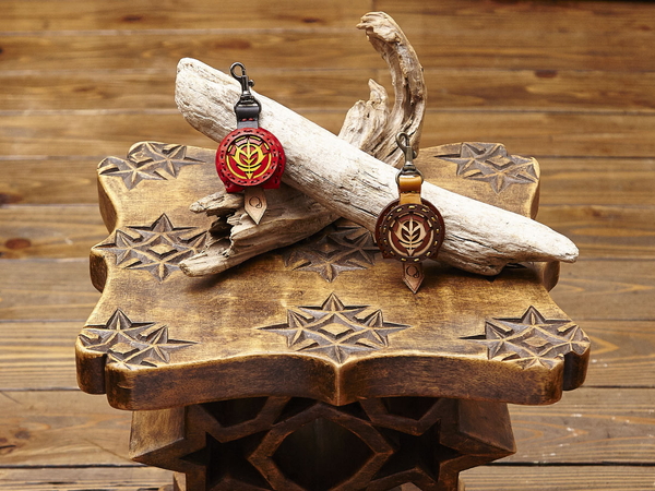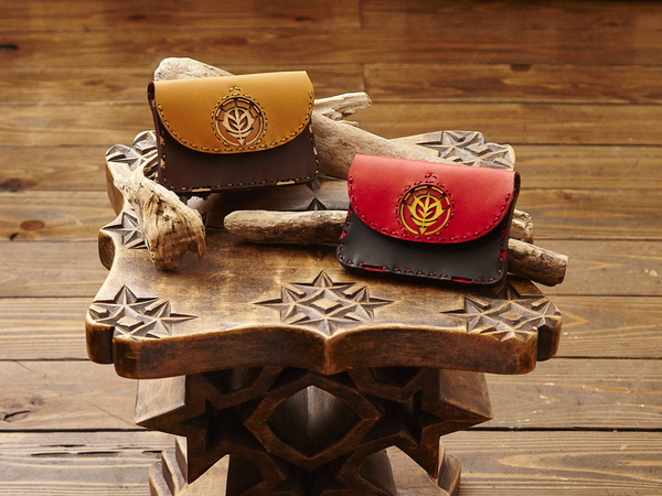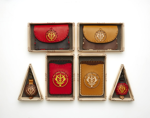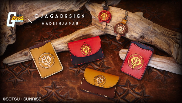 “OJAGA DESIGN”特有の皮を重ねて立体感を演出するデザインで、『機動戦士ガンダム』に登場するジオン公国軍のエンブレムが表現されているアイテムだ。シンプルなデザインで様々なシーンでも使いやすい3アイテムは、革色を活かしたブラウンカラーに加えて作中の主要キャラクター、シャア・アズナブルをイメージしたレッドカラーの2色で展開。