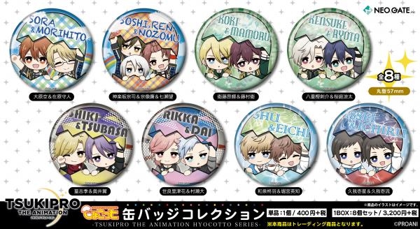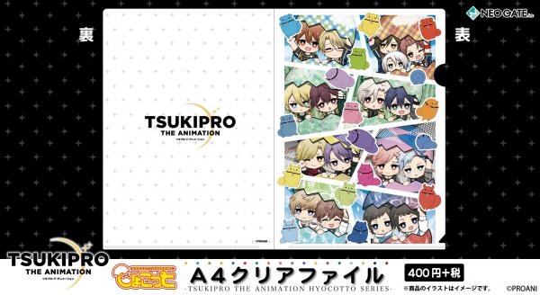 NEO GATEは、TVアニメ『TSUKIPRO THE ANIMATION』より、【ひょこっとシリーズ】の描き起こしイラストを使用した“トレーディング缶バッジ”、“A4クリアファイル”、“マグカップ”をアニメイト各店・アニメイトオンラインショップ、ステラワース・ステラワース通信販売、アニメプラザオンラインショップ他での発売する。また、予約受付も実施されている。