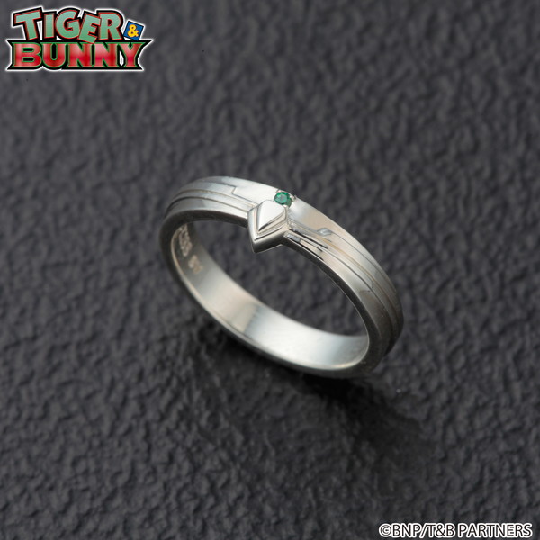 虎徹モデルは、虎徹がヒーローとして戦う時のヒーロースーツ姿“ワイルドタイガー”の胸部分をモチーフにした形状で、ワイルドタイガーのマーク“タイガーマーク”部分に、グリーンのカラーストーンがあしらわれている。バーナビーモデルは、虎徹モデル同様ヒーロースーツの胸部分をイメージし、胸の丸部分にレッドのカラーストーンが施されている。男女ともに普段使いしやすいシンプルなデザインだ。