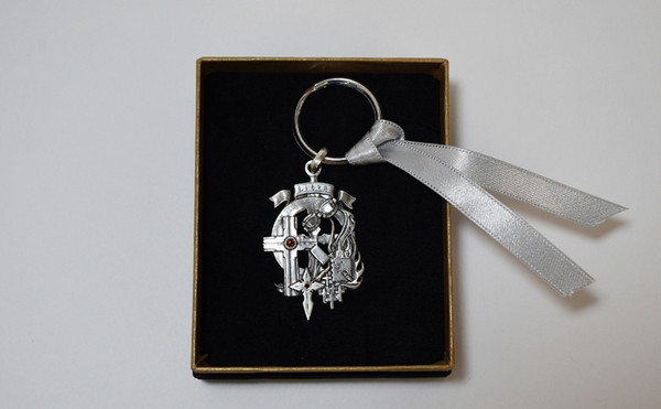 シルバーキーホルダーには、“LIBRA”の主要メンバー“レオナルド”、“クラウス”、“ザップ”、“スティーブン”の4名を象徴するモチーフがあしらわれている。1つ1つハンドメイドで仕上げられており、チャーム、リングともにシルバー製の本格的な一品だ。