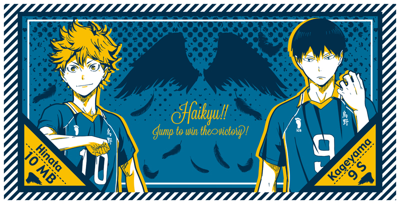 日向&影山を描いたバスタオルです。肩にかけると、背中にカラスの羽が生えたようなデザインになります。
