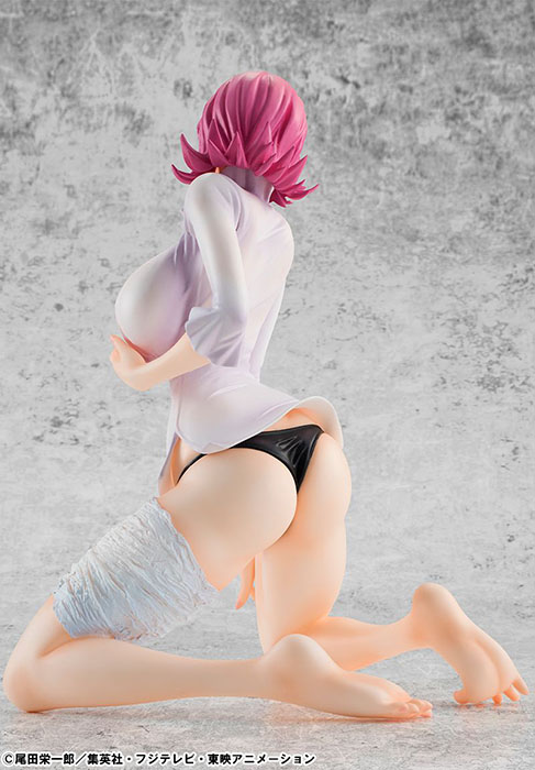 サンジの実姉であるヴィンスモーク家の紅一点“レイジュ”が、薄手のシャツの胸元が大きくはだけた魅惑のポージングで登場。作中でも描かれた“サンジに救出された際の衣装”をイメージして立体化されている。