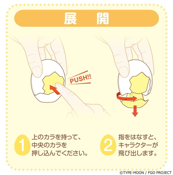卵型から人型にワンタッチ変形する新感覚カプセルトイ“ぴよくる”の第1弾“『Fate/Grand Order』01”が本日3月22日より全国の家電量販店、アミューズメント施設で順次販売される。