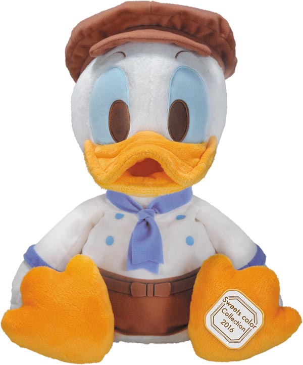 パティシエの衣装を着たドナルドのぬいぐるみです。