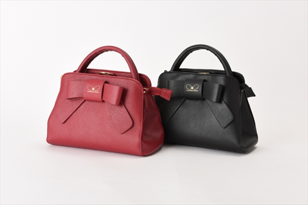 コロンとした形のバッグ。大きなリボンがワンポイント。レッドとブラックの2色展開。