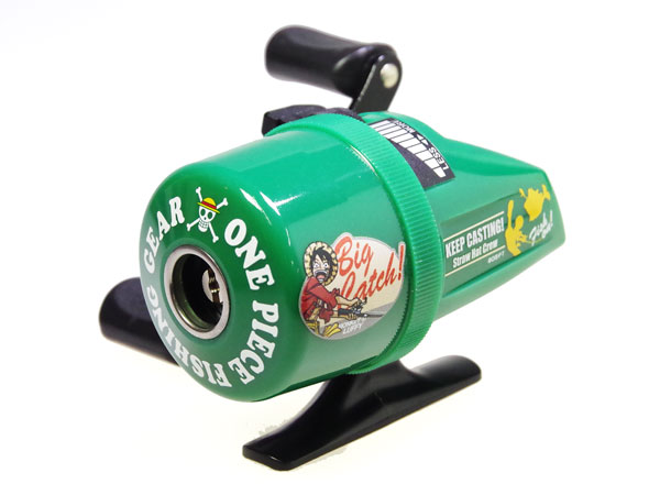 海、川、湖など様々なフィッシングシーンで使えるスピンキャストタイプのリールとして、海賊旗をあしらったブラックボディの麦わらの一味と、“Big Catch(大漁)”のロゴと釣りをするルフィが描かれたグリーンボディのルフィの2モデルがラインナップされている。