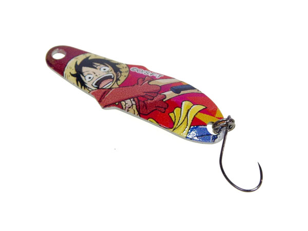 Spoon(スプーン)と呼ばれる金属製の疑似餌(ルアー)に、『ワンピース』のキャラクターたちを高精細プリント。釣り針を付ければ実際に魚を釣ることができ、同梱のストラップを取り付ければアクセサリーとしても楽しめる。本商品は中身の見えないブラインドパックに入ったランダム販売。どのキャラクターが入っているのかなど楽しさ満載のスプーンだ。