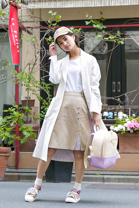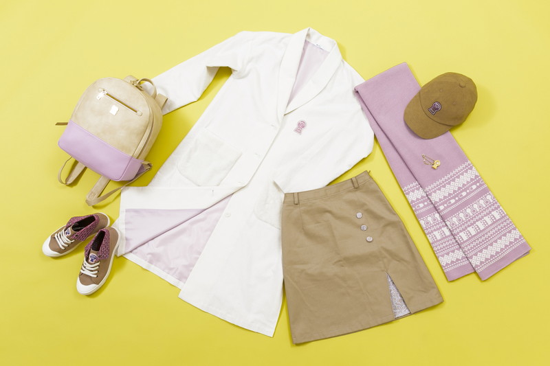 エレガント&キュートがテーマの灰原モデルは、理系女子マストアイテムの“白衣”をイメージしたアウターが彼女らしさ満載。錠剤モチーフの形や、“APTX4869”が所々にデザインされた大人レディなテイストだ。