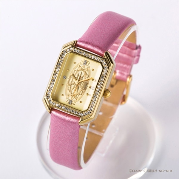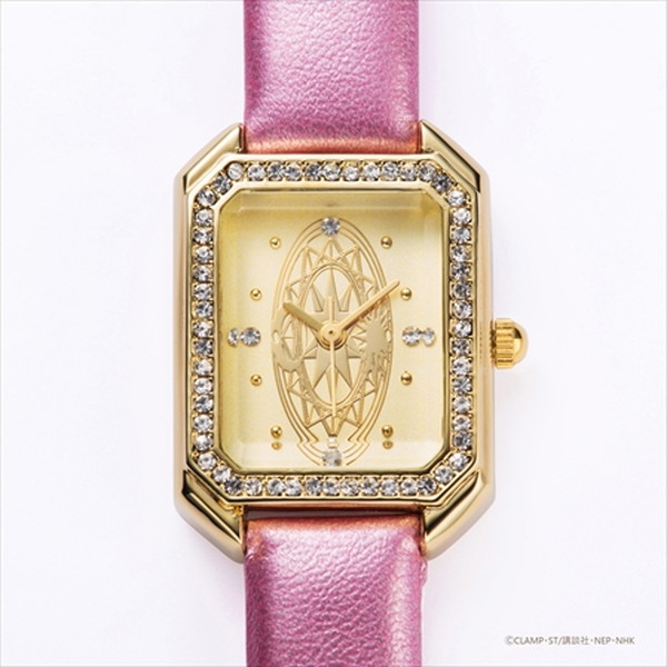 『カードキャプターさくら』に登場する“クリアカード、さくらカード、クロウカード”をイメージしたスクエア型腕時計。小ぶりな文字盤にカードデザインを高級感あるエンボス加工で仕上げている。クリアなチェコガラスを配置した文字盤もかわいらしい仕上がりでシンプルながらも上品なベルト時計。ベルト部分はカードをイメージしたカラーを使用し、腕元でさりげなく作品の世界観を感じられる。3種とも裏面にはケロちゃんの刻印入っている。