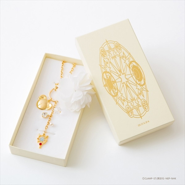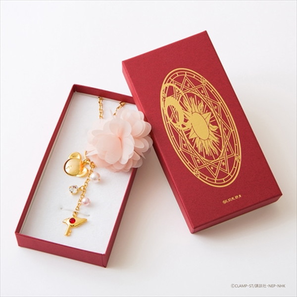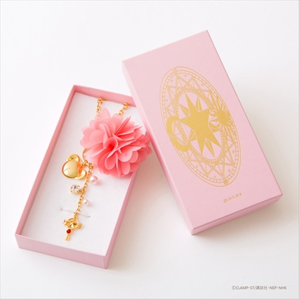 『カードキャプターさくら』に登場する夢の鍵、星の鍵、封印の鍵をモチーフにした可憐なフラワーチャーム。鍵のモチーフを引き立てる、シフォン素材のフラワーチャームがポイント。チャームに付属する石やパールは全てスワロフスキークリスタル(R)とスワロフスキーパールを使用し高級感のある仕上がり。