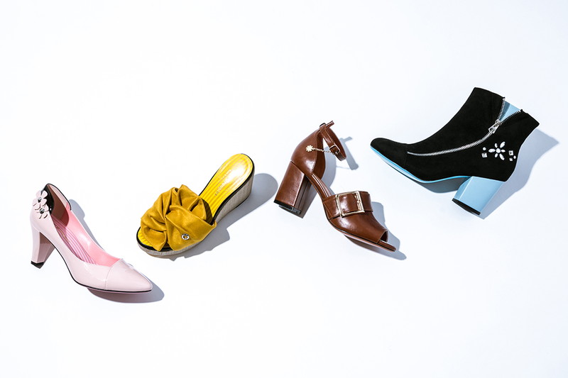 シューズは、それぞれの組をイメージしたカラーのパンプス、サンダル、ショートブーツとなっている。どれもベーシックなデザインなので、幅広いコーディネートで大活躍すること間違いなしのアイテムだ。