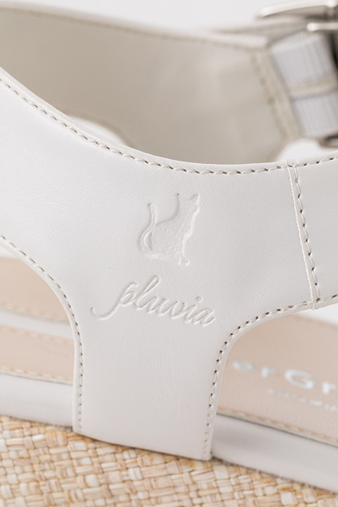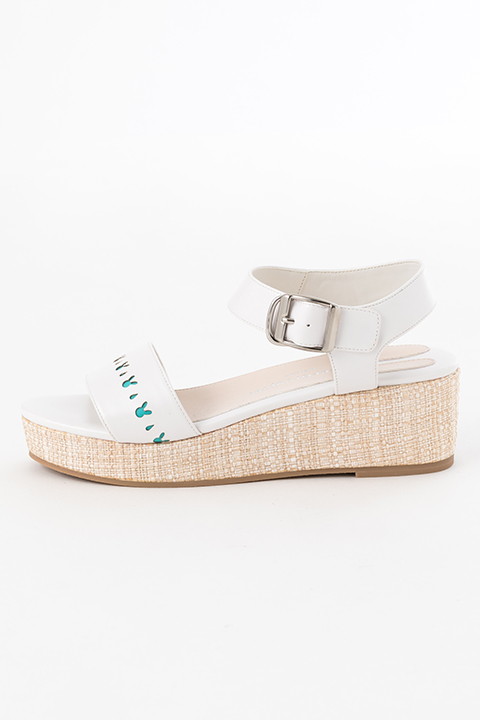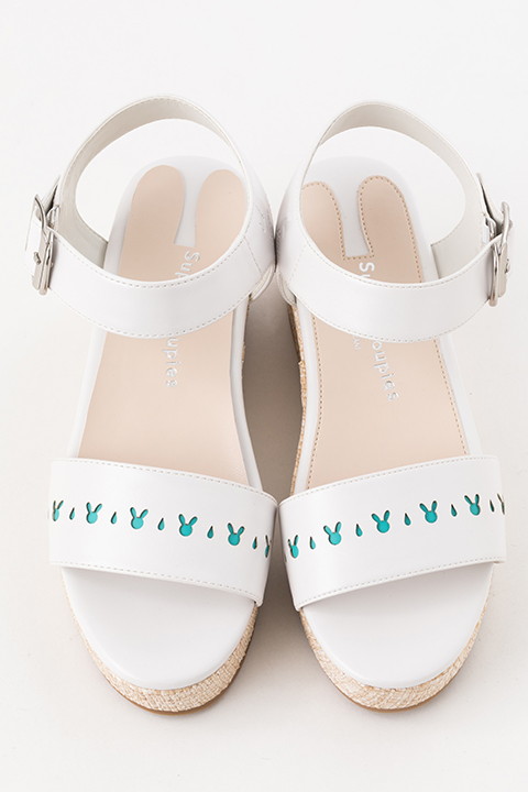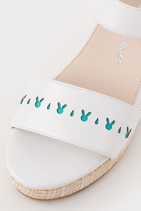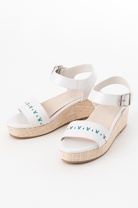 爽やかなホワイトにイメージカラーのうさぎ&涙模様のカッティングがキュート。安定感のあるウェッジソールで履き心地も抜群。