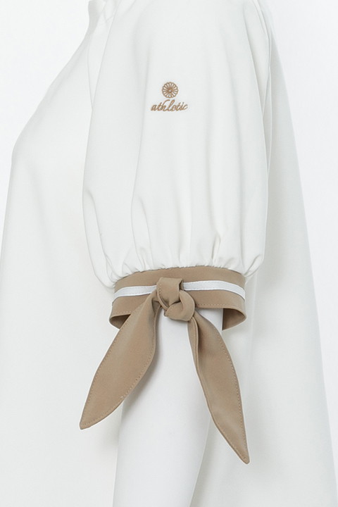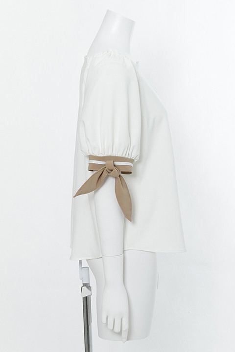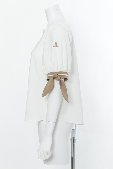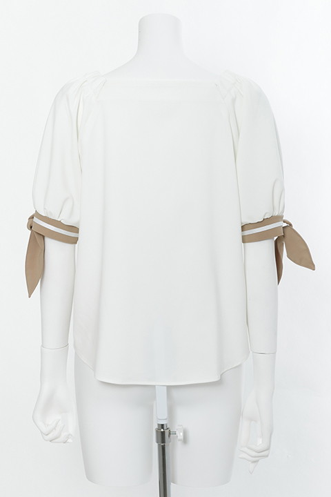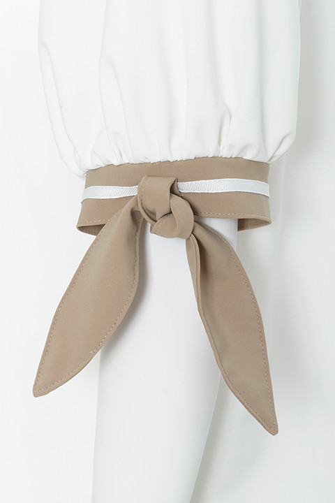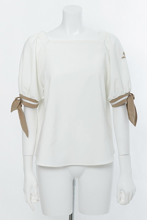 スクエアネックが印象的なデザイン。袖の結び目でうさぎの耳が表現されており、さり気なくこだわりが詰め込まれている。