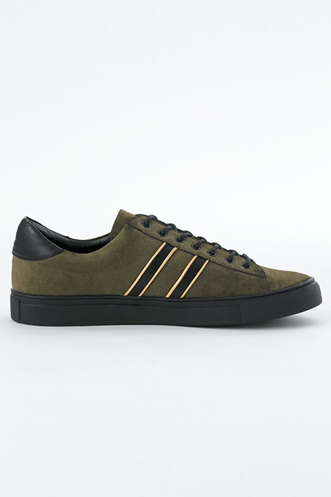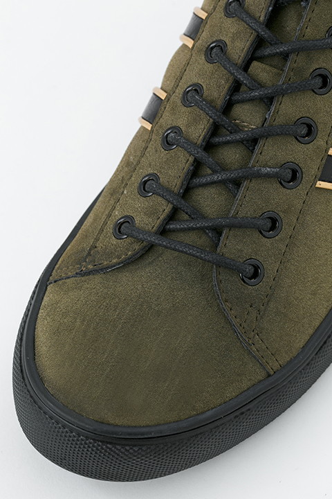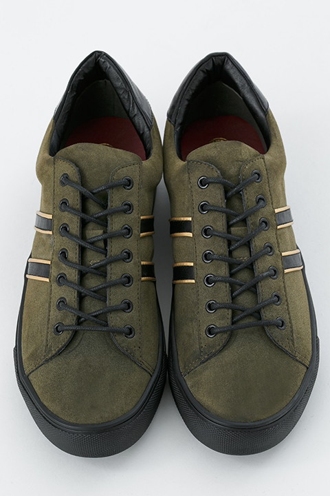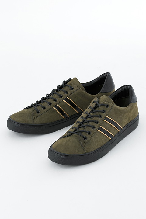 ラフな雰囲気のある御手杵をイメージしたローカットスニーカー。腰元の防具をモチーフにしたブラック×ゴールドのラインがポイント。