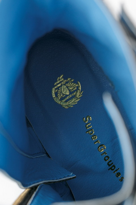 太鼓鐘貞宗が履いている靴をモチーフにしたブーツ。内装は、羽織りをイメージした鮮やかなブルー。