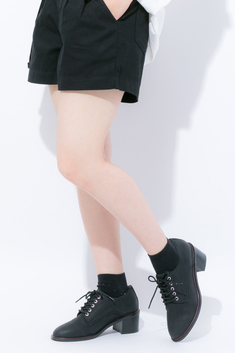 薬研藤四郎が履いている靴をモチーフにしたブーティ。さり気なく朱色のラインをあしらったクールなデザイン。