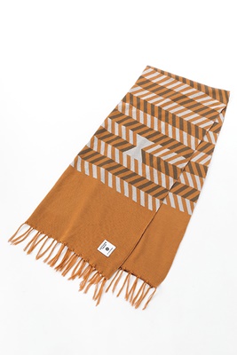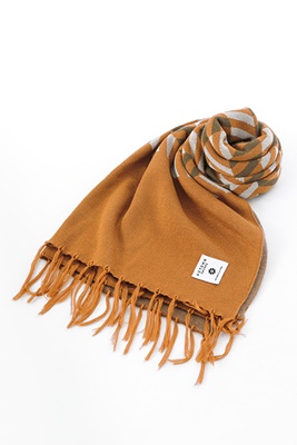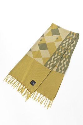 ベーシックな形に淡いトーンの組カラーで大人っぽいデザイン。天馬、幸、椋、三角、一成のモチーフフラワーを組み合わせたチャームが付属する。ストールは、落ち着いたマスタードイエローが顔まわりを華やかにしてくれる。