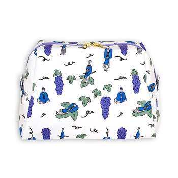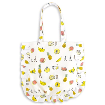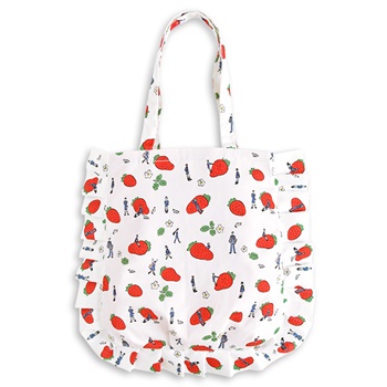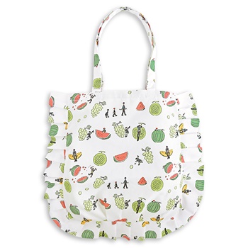 ラインナップは、フリルトート、クッションカバー、トラペーズポーチ、BOOK iPhoneケース、thermo mug ステンレスボトルの5アイテム。“三日月宗近とぶどう”や“藤四郎兄弟といちご”など刀剣男士とフルーツがキュートにデザインされている。
