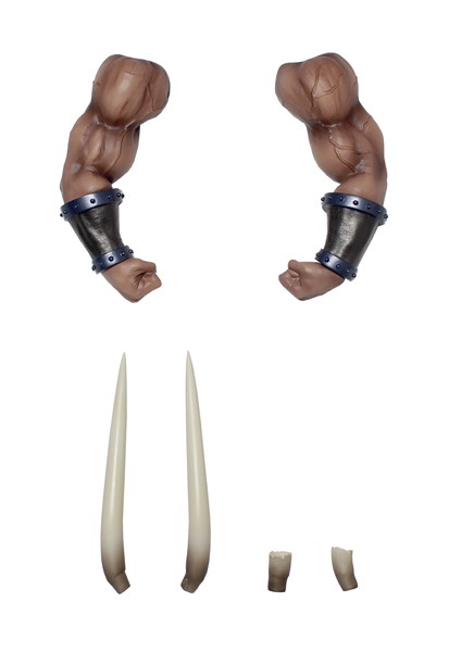 本商品は、以前発売していたレジンキャスト製の商品と異なり、衝撃を緩和される効果や破損を極力防ぐためジョイント部分にマグネット(磁石)を採用しました。オプションパーツとして付属される「両腕」「握り拳」「開き手」「鼻(牙)」が簡単に装着。パーツを付け替えることで、作中の牙の折れた“マンモスマン”や雄叫びを上げる“マンモスマン”を再現して楽しむことができる。