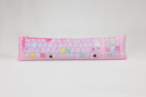 本商品は、ルナのぬいぐるみとアームレストがセットになったもの。ぬいぐるみのルナには、愛らしい表情が再現されている。顔の部分は刺繍で再現され、細かい部分にもこだわって作られており、抱き心地の良いほどよい硬さのルナをデスクと体の間に挟むことで、楽な姿勢でPC作業をすることができる。