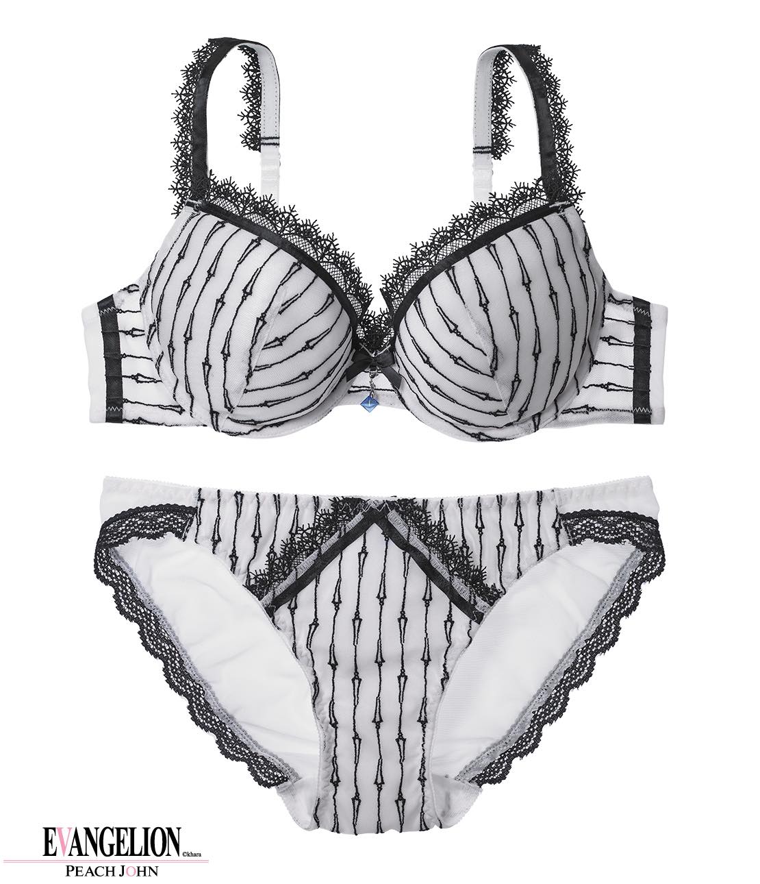 作中に登場するロンギヌスの槍をモチーフにしたブラとパンティーのセット。どちらにも第6の使徒をイメージしたチャームが付いている。