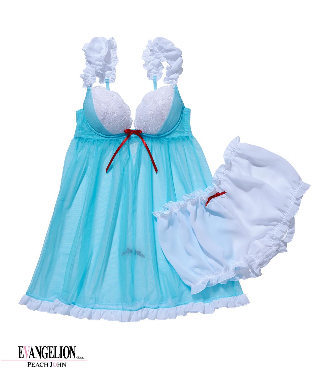 シンジたちが通う第3新東京市立第壱中学校の制服をランジェリーとしてアレンジしたもので、ワイヤー入りのドールタイプ。柔らかいチュールをメインに、カップにはレース、袖やオーバーパンツにはシフォンを使用したセットとなっている。