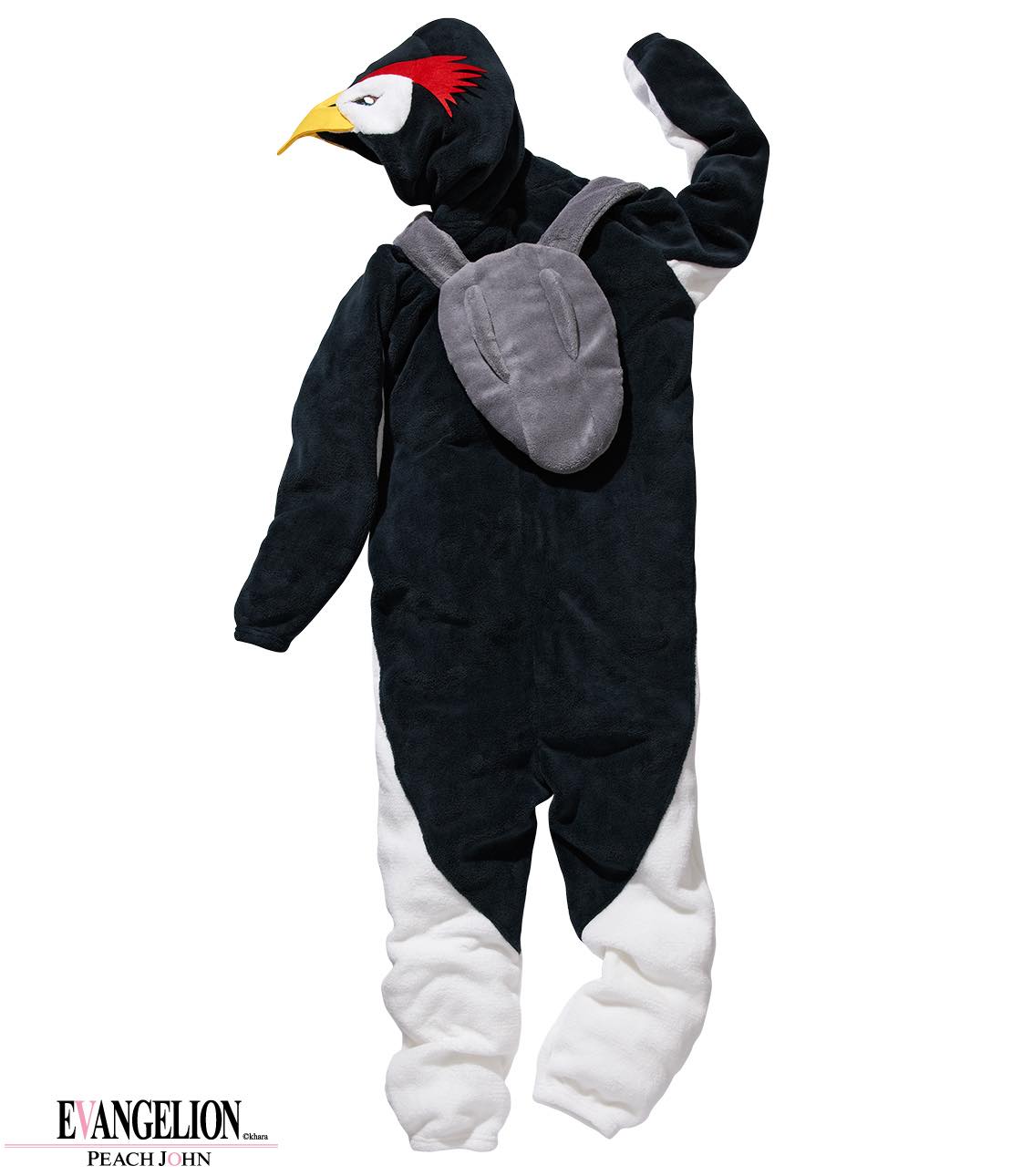 作品に登場する葛城ミサトの同居人・ペンペンになりきれる『ペンペンオールインワンセット』は、身生地がボア素材で暖かい、着ぐるみ型のオールインワンタイプのルームウェアと、ルームシューズがセットになっている。