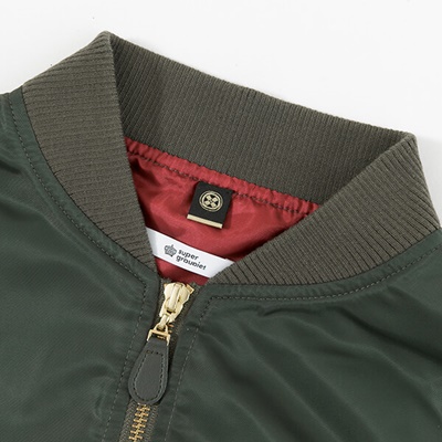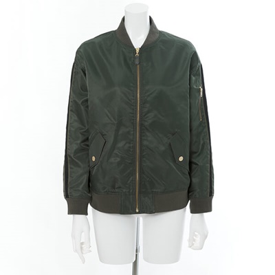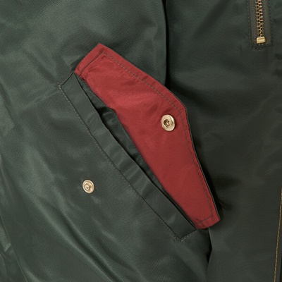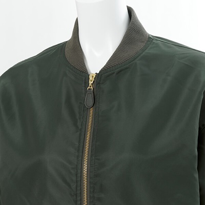 カジュアルな雰囲気のあるゆったりとした着心地のMA-1。服装をイメージしたカラーリングに、ブラックのラインとゴールドのステッチがポイント。