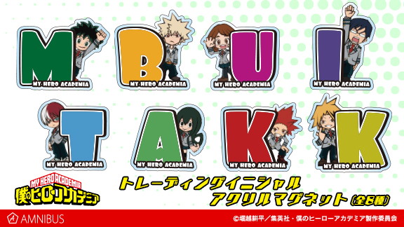 『僕のヒーローアカデミア』より、“トレーディングイニシャルアクリルマグネット”と“Ani-Art カードステッカー”の受注が通販サイト“AMNIBUS”にて受付中だ。