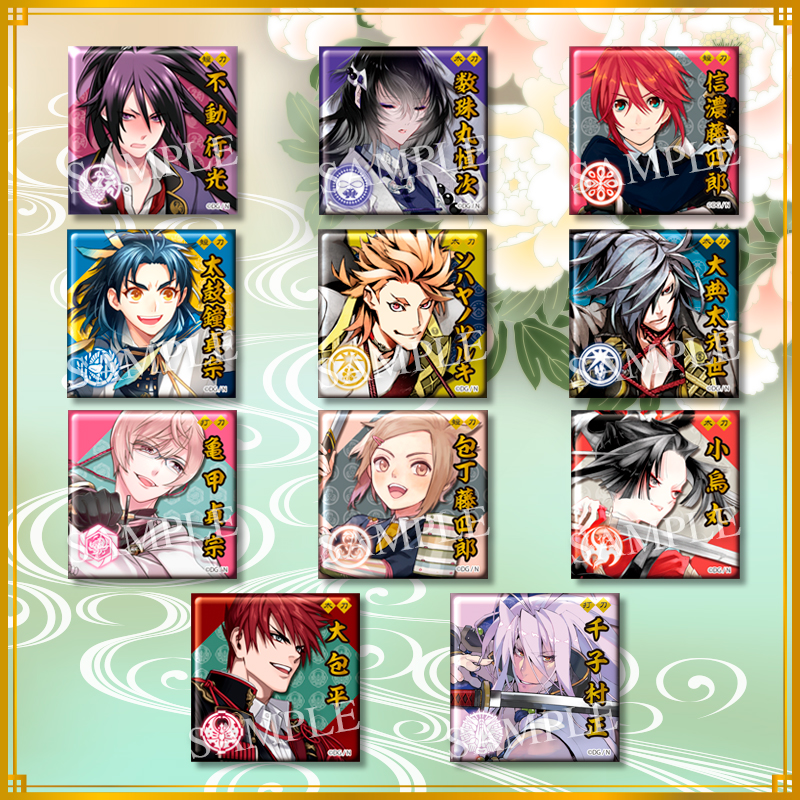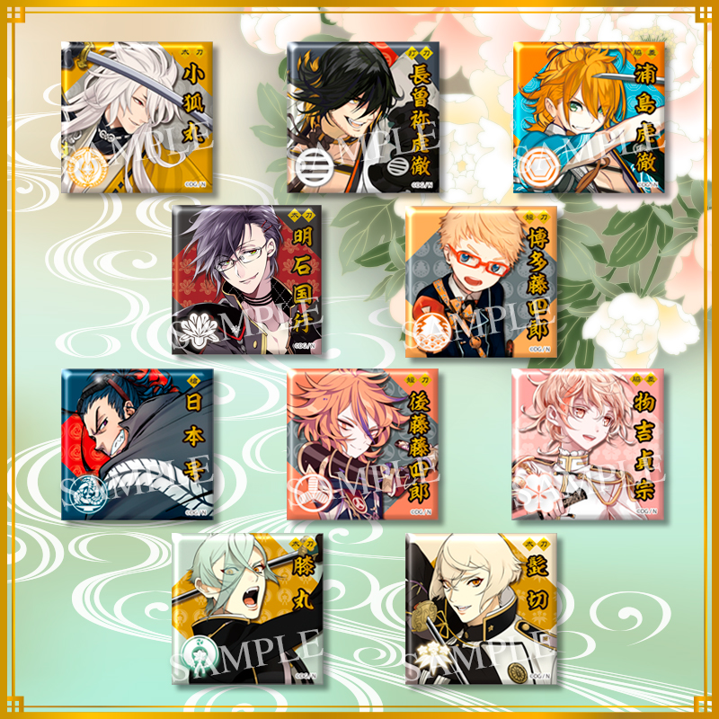 『刀剣乱舞』小狐丸や長曽祢虎徹ら21振りの戦闘立ち絵がデザインされたスクエア型缶バッジ登場
